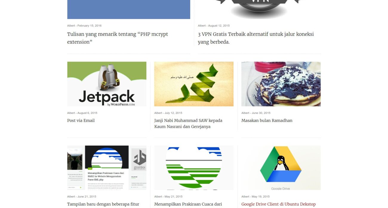 Menampilkan sumber data pada website lain melalui feed/rss yang ada pada website tersebut pada html dengan menggunakan javascript htmlfromrss.js didalmnya. Berikut Mutiple html feed from rss feed sebagai contoh untuk menampilkan feed/rss tersebut. <div class="demo" data-htmlfromrss="http://site1.kom/news/rss"></div> <div class="demo" data-htmlfromrss="http://site2.net/sport/rss.xml"></div> $(document).ready(function(){ $(".demo").htmlfromrss( limit = 10 ); }); Untuk melihat hasilnya bisa dilihat dibawah [...]